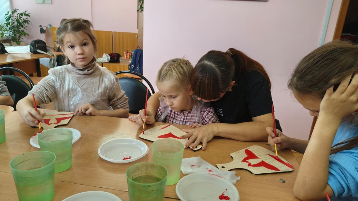 В рамках предмета "Народное творчество", ребята узнали об истории возникновения этого вида росписи, её технике и основных особенностях.