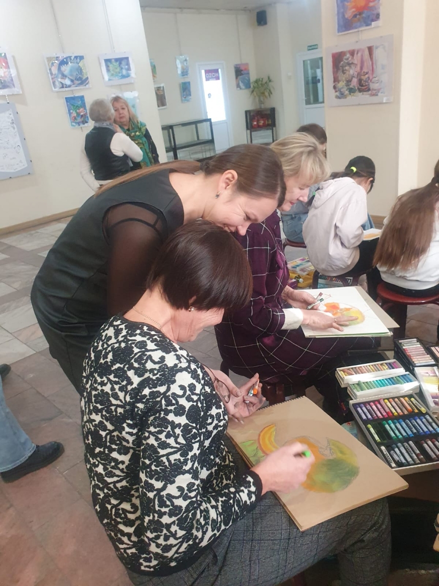 Все желающие смогли попробовать свои силы в написании этюда сухой пастелью. Многие впервые познакомились с этим художественным материалом и остались довольны своими результатами.