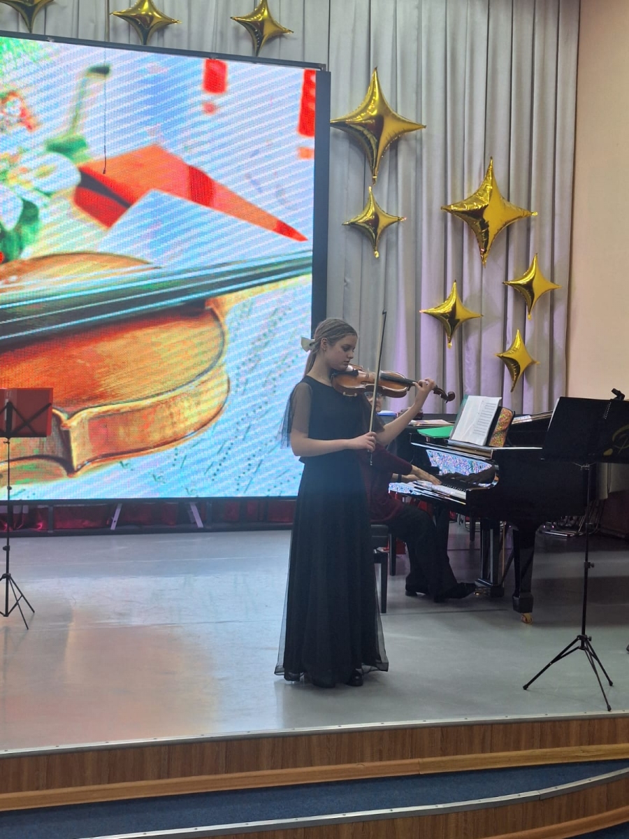 Между номерами ансамбля «Ноктюрн» выступали учащиеся струнно‑смычкового отделения.