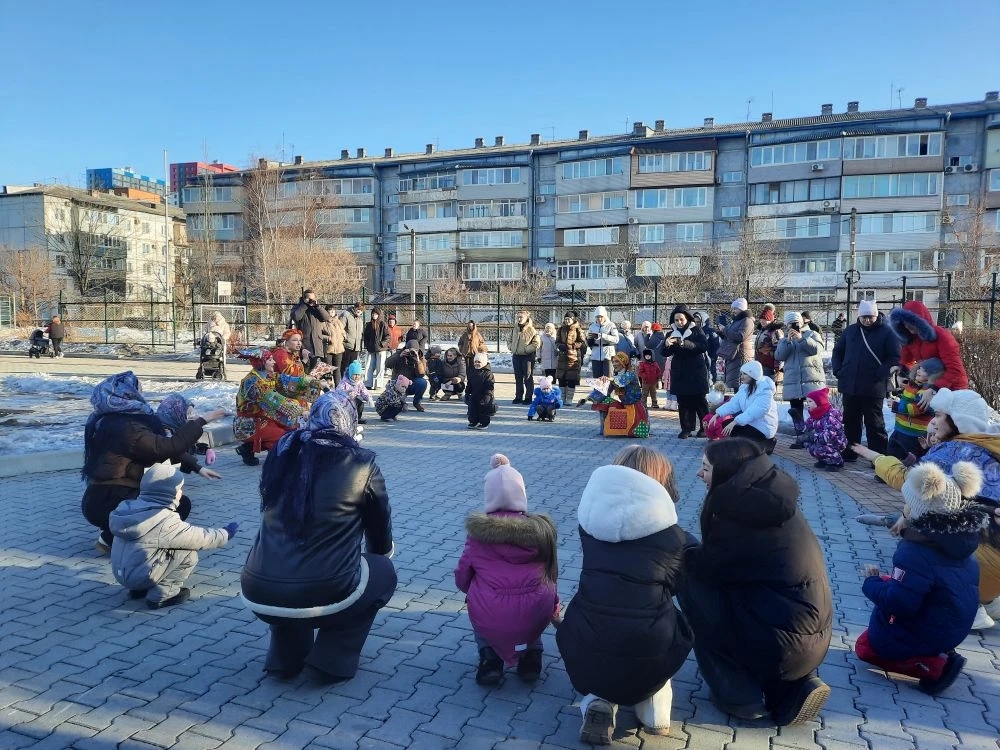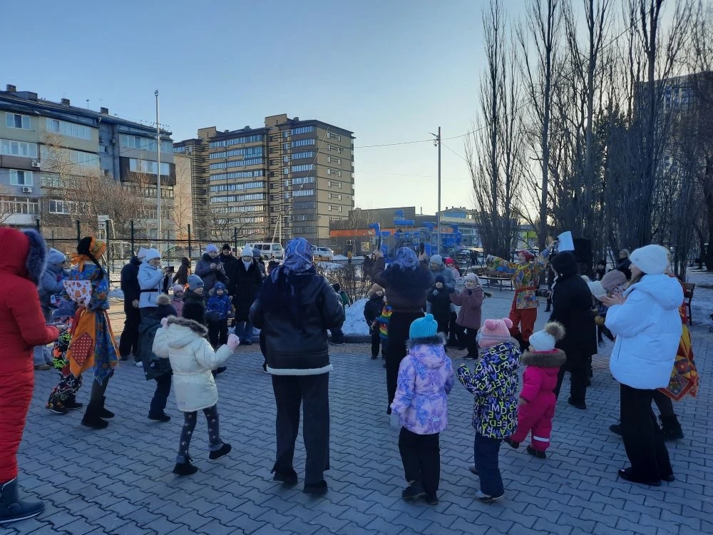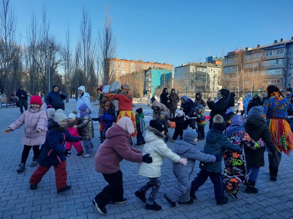 Первый день Масленицы прошёл в сквере имени Кузьменчука. Мероприятие было организовано с целью приобщения детей к русским народным традициям и создания праздничной атмосферы.