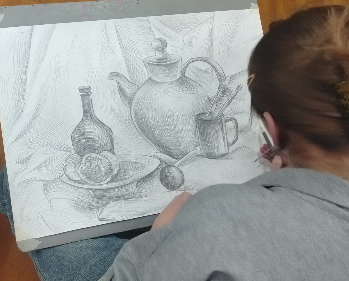 Учащиеся 4 класса отделения Декоративно-прикладного творчества (5-летняя программа обучения) — Клименок Софья и Петрова Валерия — с достойными результатами приняли участие в городской олимпиаде по рисунку, продемонстрировав высокий уровень художественной подготовки, творческое мышление и индивидуальный стиль.