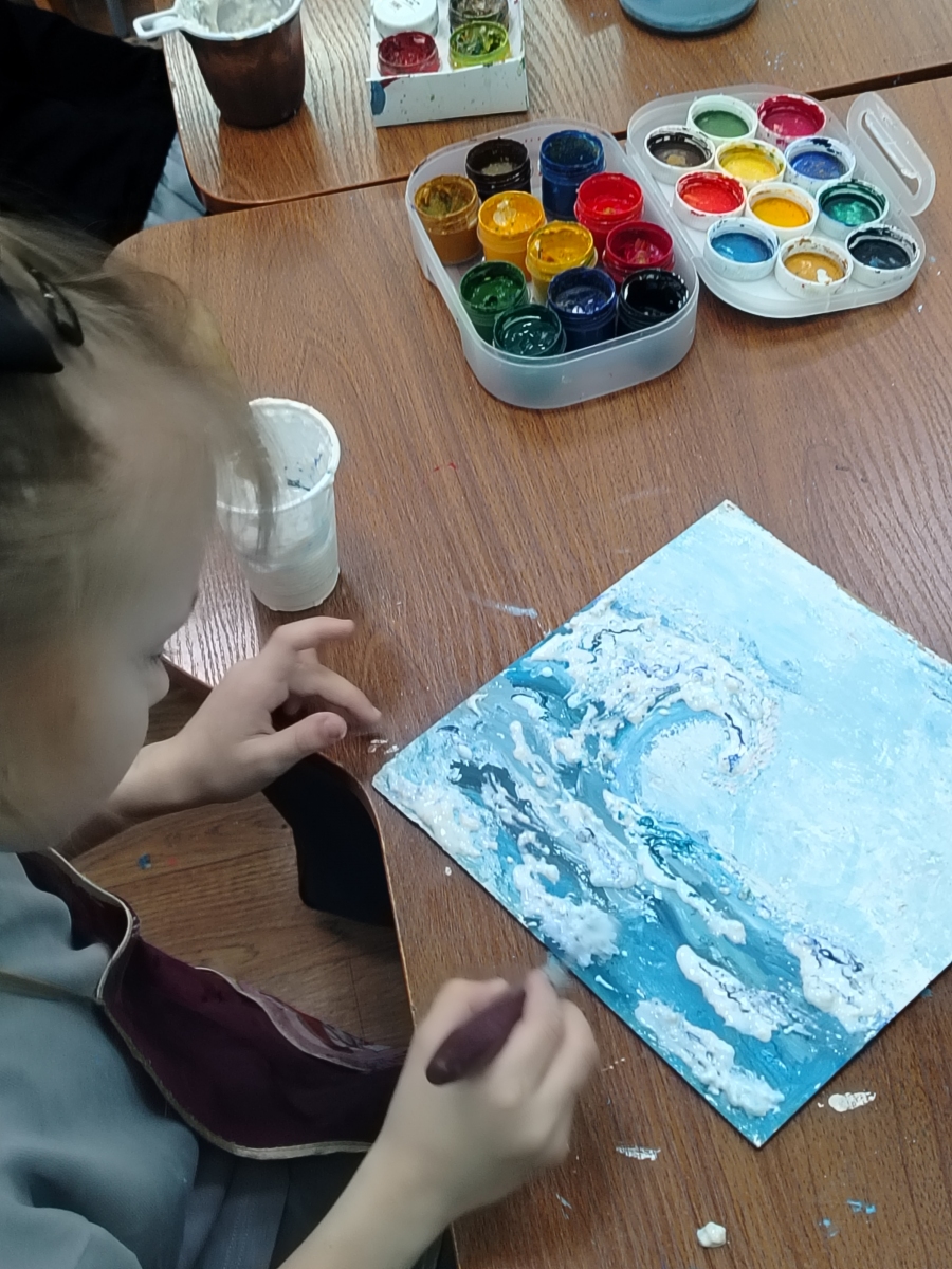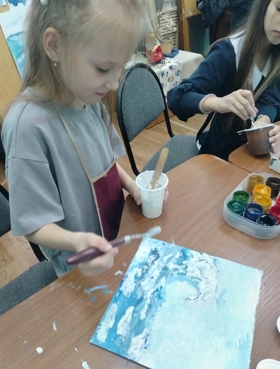 На отделении Декоративно - прикладного творчества, учащиеся 3 класса 8 летнего обучения приняли участие в мастер-классе, где получили знания и попробовали себя в новой творческой технике работая с текстурной пастой и жидким гипсом.
