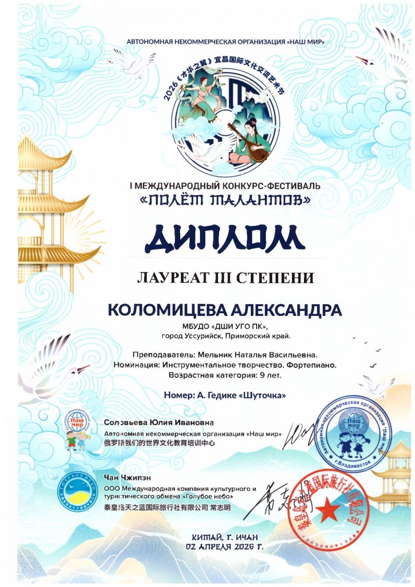 - Коломицева Александра — лауреат III степени.