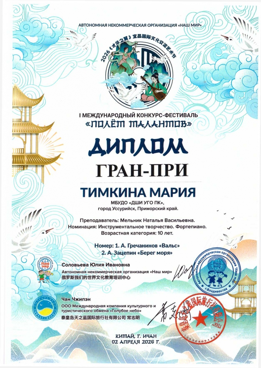 - Тимкина Мария удостоена Гран‑при;