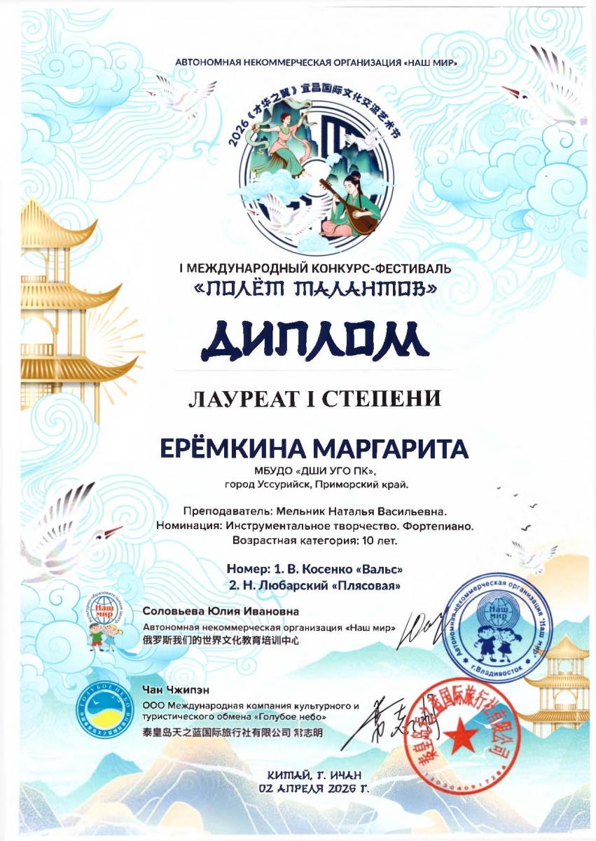 - Еремкина Маргарита стала лауреатом I степени;