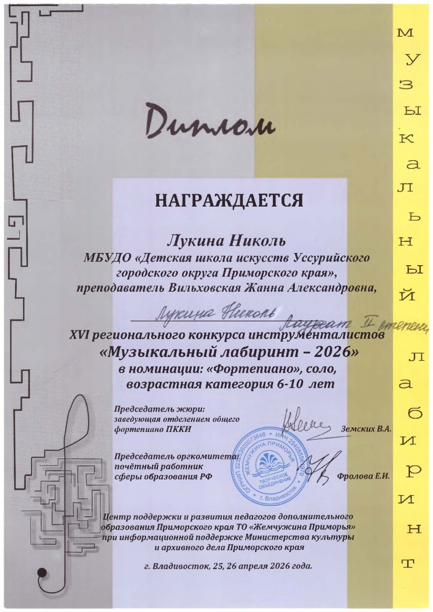 25 апреля во Владивостоке прошёл XVI региональный конкурс инструменталистов «Музыкальный лабиринт — 2026».